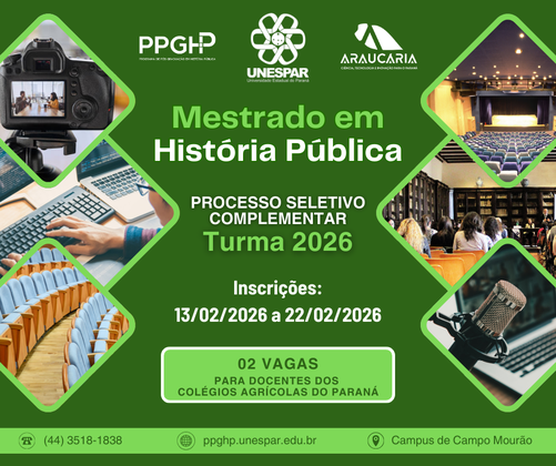 Enviar todos os documentos solicitados na Inscrição (item 6.2 do Edital 003/2026) para o e-mail historiapublica@unespar.edu.br, com o assunto: INSCRIÇÃO - SELEÇÃO COMPLEMENTAR DO PPGHP (EDITAL 003/2026).